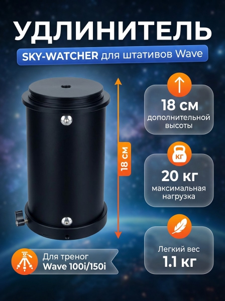 Удлинительная трубка для телескопа Sky-Watcher для треноги Wave 100i/150i - БрендСтрана бренда: КНР Премиальность бренда:Посмотреть все аксессуары для оптических приборов Sky-Watcher (51) Удлинительная трубка для телескопа Sky-Watcher для треноги Wave 100i/150i - Характеристики