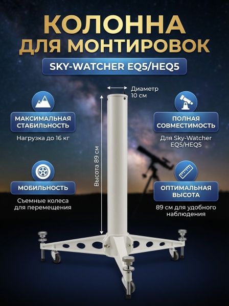 Эта колонна предназначена для использования на ровной и твердой поверхности. Модель совместима с монтировками EQ5 и HEQ5.