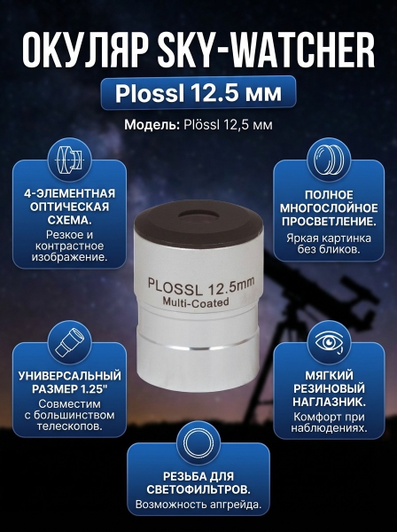 Окуляр Sky-Watcher Plossl 12.5 мм 1.25" - Преимущества