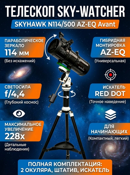 Телескоп на штативе Sky-Watcher SKYHAWK N114/500 AZ-EQ Avant - Преимущества