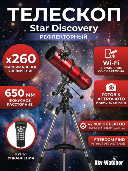 Телескоп на штативе Sky-Watcher Star Discovery P130 SynScan GOTO - БрендСтрана бренда: КНР Премиальность бренда:Посмотреть все зеркальные телескопы-рефлекторы Sky-Watcher (33) Телескоп на штативе Sky-Watcher Star Discovery P130 SynScan GOTO - Характеристики