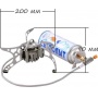 Собрав все лучшее от своего предшественника, эта многотопливная плита имеете целый ряд усовершенствований, доработок и дополнений. Нами был полностью изменен насосный узел плиты. Теперь он имеет резьбовую посадку идентичную клапану газового баллона, поэтому можно запитать плиту от газовых баллонов и от топливной фляги не сменяя клапан. На корпус насосного узла добавлена опорная ножка, которая фиксирует баллон в оптимальном положении, при котором полностью вырабатывается заправленное топливо и предотвращается самопроизвольное проворачивание баллона.