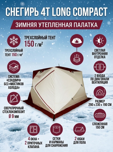 Палатка утепленная Снегирь 4Т long компакт - Описание