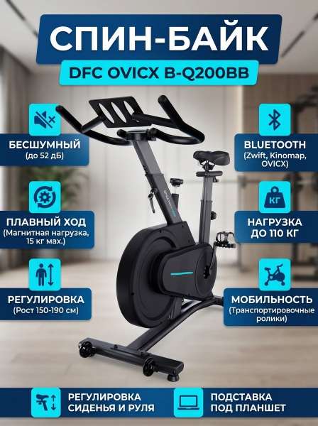 Беговая дорожка DFC OVICX B-Q200BB - ОписаниеСомневаетесь? - Посмотрите рейтинг ТОП-10 по категории «Велотренажеры»Спин-байк OVICX B-Q200BB — отличный вариант для тех, кто желает проводить качественные кардио-тренировки прямо у себя дома, имитируя катание на настоящем велосипеде. Тренировки на спин-байке помогают укрепить ноги, ягодицы и живот, улучшить кардиореспираторную систему и сбросить вес.