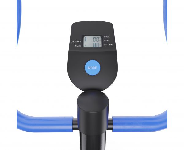 Велотренажер имеет монохромный LCD-дисплеей, который отображает ключевые параметры тренировки: время, калории, дистанцию, скорость и сканирование. Это позволит отслеживать прогресс и корректировать нагрузку в реальном времени. Для работы консоли используются батарейки типа АА (1.5 В) — простое и удобное решение, не требующее подключения к сети. Батарейки в комплект не входят.