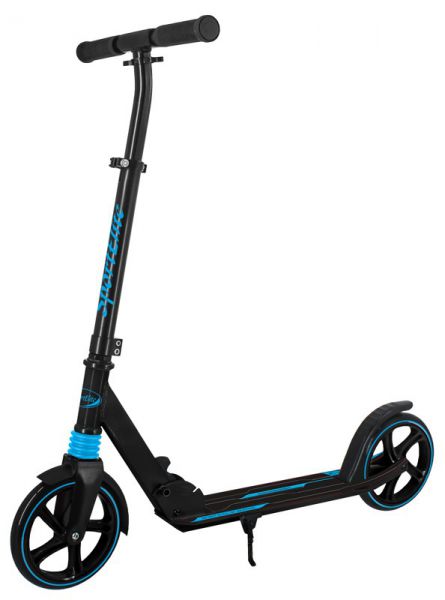 Самокат городской Sport Elite SE-700 черный/синий - ОписаниеЯркая и стильная модель самоката оснащена большими колесами на качественных подшипниках. Руль имеет регулировку по высоте и может быть настроен под нужный рост. Амортизатор над передним колесом сгладит все неровности дорог.
