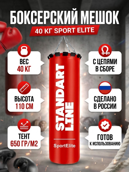 Мешок боксерский Sport Elite Standart Line 40 кг красный - ДоставкаДоставка по Москве: 495 ₽, 1-2 дняДоставка по Санкт-Петербургу: 795 ₽, 2-3 дня Доставка по России: стоимость уточняйте у оператора. Мешок боксерский Sport Elite Standart Line 40 кг красный - Отзывы0.0