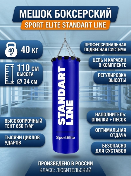 Мешок боксерский Sport Elite Standart Line 40 кг синий - БрендСтрана бренда: КНР Премиальность бренда:Мешок боксерский Sport Elite Standart Line 40 кг синий - Характеристики