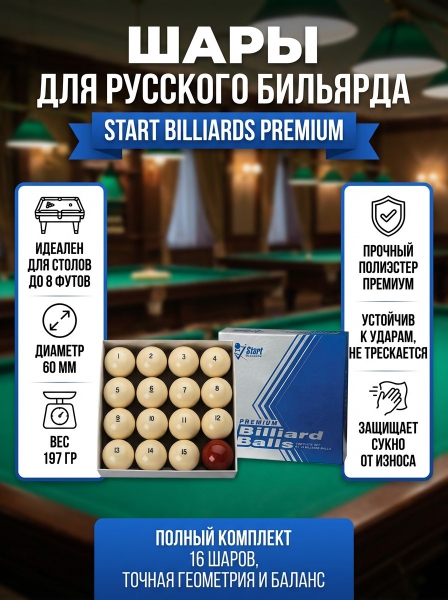 Шары для русского бильярда 60 мм Фабрика СТАРТ Start Billiards Premium 797404 - Преимущества