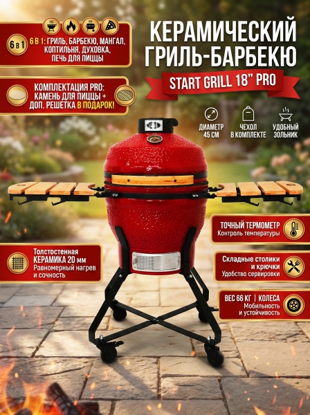 Керамический гриль-барбекю Start Grill 18 дюймов (красный) (45 см) - ДоставкаДоставка по Москве: бесплатно, 1-2 дняДоставка по Санкт-Петербургу: бесплатно, 2-3 дня Доставка по России: стоимость уточняйте у оператора. Керамический гриль-барбекю Start Grill 18 дюймов (красный) (45 см) - Отзывы0.0