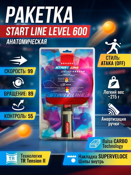 Ракетка для настольного тенниса Start Line Level 600 анатомическая 12703 - ДоставкаДоставка по Москве: 495 ₽, 1-2 дняДоставка по Санкт-Петербургу: 795 ₽, 2-3 дня Доставка по России: стоимость уточняйте у оператора. Ракетка для настольного тенниса Start Line Level 600 анатомическая 12703 - Отзывы5.0