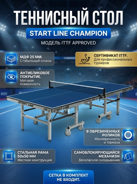 Стол теннисный без сетки Start Line Champion 60-800 - БрендStart Line – это известный во всем мире производитель оборудования для здоровья и спорта, каждый экземпляр которого сопровождается гарантией качества.