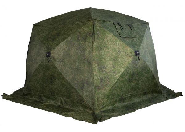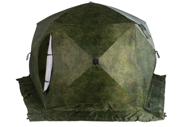 Палатка-ШАТЁР СТЭК ЧУМ 2 Т(трехслойная) пиксель с навесом +сетка - ОписаниеПалатка ЧУМ 2 от уральского производителя – это идеальный выбор для зимней рыбалки. Она предназначена для комфортного отдыха четырех и более человек в самых сложных погодных условиях. Модель имеет стеклопластиковый каркас с добавлением карбона и синтетический не продуваемый тент (оксфорд 240PU). Внутренняя подкладка выполнена из термостойкой ткани, стеганного полотна и синтепона. Дополнительная прослойка пространства позволяет создавать воздушную подушку для длительного сохранения тепла внутри. Конструкция имеет вывод под печную трубу, что дает дополнительные возможности для обогрева в холодное время года. Также есть москитная сетка, а значит, палатка подойдет и для летних походов. Палатка оборудована двумя входами, что удобно в случае отдыха семьей или компанией. Она многофункциональная, комфортная, просто раскладывается. В собранном виде отличается компактными размерами: 180х45х30 см.