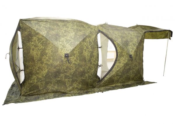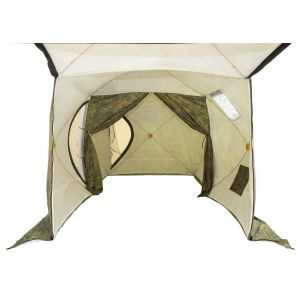 Палатка СТЭК ДУБЛЬ-3Т (трехслойная) камыш с навесом +сетка - ОписаниеКаркас изготовлен из cтеклопластика с добавлением карбона. Тент изготовлен из синтетической непродуваемой ткани (оксфорд 240PU). Внутренний тент стеганое полотно из синтепона и подкладочной ткани таффета (термостëжка). Вывод под печную трубу: ткань негорючая, ветро- паро - влагозащитная Оксфорд и термостёжка не склеены и не стеганы между собой, что позволяет создавать пространство для создания воздушно - тепловой подушки. Так же это позволяет удалять образующий конденсат и просушивать палатку.