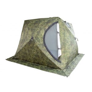 Палатка СТЭК КУБ-4 Т (трехслойная) пиксель с навесом +сетка - ОписаниеПалатка КУБ 4 (трехслойная, камуфляж пиксель с навесом и сеткой) Времяпровождение в компании друзей на свежем воздухе – это замечательный вариант отлично провести выходные. Но, что делать, если за окном зима, а вы хотите на рыбалку?! Решение данной проблемы простое, нужно просто купить современную и надежную палатку, такую как КУБ 4 (камуфляж с навесом). Данная модель проста в установке, которая не займет много времени. Палатка имеет трехслойный тент, благодаря чему вы будете защищены от ветра, и сможете находиться в комфортной температуре.