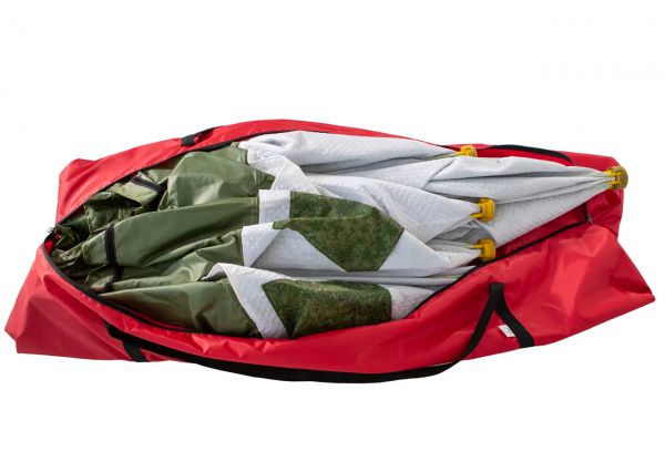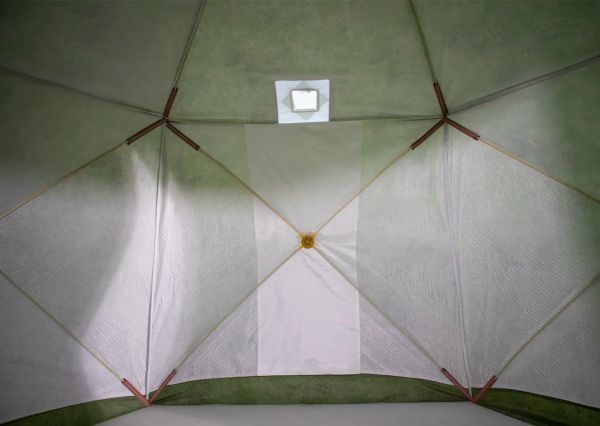 Модель имеет стеклопластиковый каркас с добавлением карбона и синтетический не продуваемый тент (оксфорд 240PU). Внутренняя подкладка выполнена из термостойкой ткани, стеганного полотна и синтепона. Дополнительная прослойка пространства позволяет создавать воздушную подушку для длительного сохранения тепла внутри.