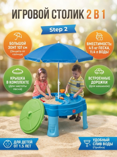 Столик для игр с песком и водой Step-2 850900 - БрендСтрана бренда: США Страна производства: США Премиальность бренда:Столик для игр с песком и водой Step-2 850900 - Характеристики