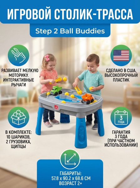 Игровой столик Step-2 «Трасса» - БрендСтрана бренда: США Страна производства: США Премиальность бренда:Игровой столик Step-2 «Трасса» - Характеристики