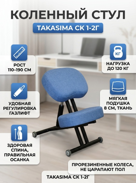 Коленный стул Takasima СК 1-2Г с газлифтом (черная рама) - Обзор ТОП-10 лучших ортопедических кресел 2025 🏆: Обзор и рейтинг
