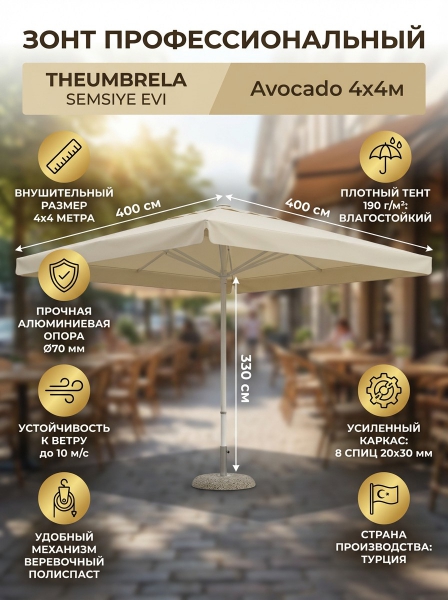 Зонт профессиональный садовый Theumbrela Semsiye Evi Avocado 60-2021-44/W/V-H3300 - Обзор ТОП-10 лучших садовых зонтов 2025 🏆: Обзор и рейтинг