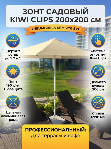 Зонт садовый профессиональный Theumbrela Semsiye Evi Kiwi Clips 50-1011-20 - Обзор ТОП-10 лучших садовых зонтов 2025 🏆: Обзор и рейтинг