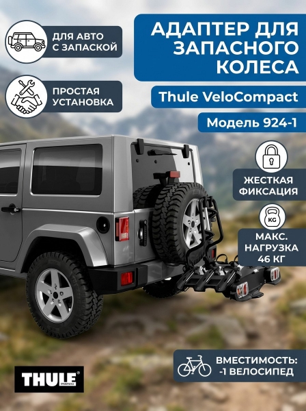 Адаптер для авто с внешним запасным колесом Thule для Thule VeloCompact - ОписаниеАдаптер 924-1 для фиксации Thule VeloCompact на автомобилях с внешним запасным колесом.