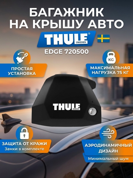 Упоры Thule EDGE 720500 с гладкой крышей - ОписаниеКомплект из 4 простых в установке опор для багажника для крыши Thule Edge, предназначенный для автомобилей с интегрированными местами для установки, Т-профилем или дополнительно установленными точками крепления багажника.