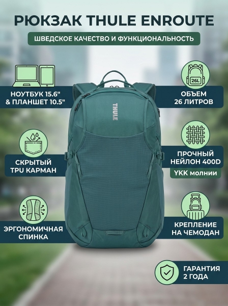 Рюкзак Thule EnRoute Backpack 26L Mallard Green - ДоставкаДоставка по Москве: бесплатно, 1-2 дняДоставка по Санкт-Петербургу: бесплатно, 2-3 дня Доставка по России: стоимость уточняйте у оператора. Рюкзак Thule EnRoute Backpack 26L Mallard Green - Отзывы0.0