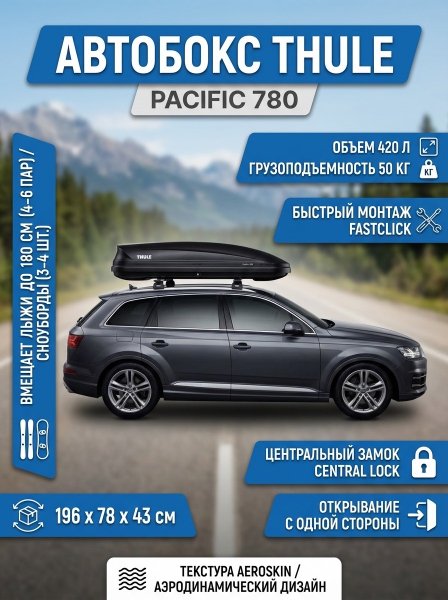 Бокс Thule Pacific 780 черный - ОписаниеФункциональный грузовой бокс для тех, кому нужно дополнительное пространство. Максимально протестировано. В Thule Test Center™ в Хиллерсторпе (Швеция) мы подвергаем наши изделия жесточайшим испытаниям. Наши автобагажники служат для перевозки снаряжения и крепятся к автомобилю максимально надежно и безопасно.