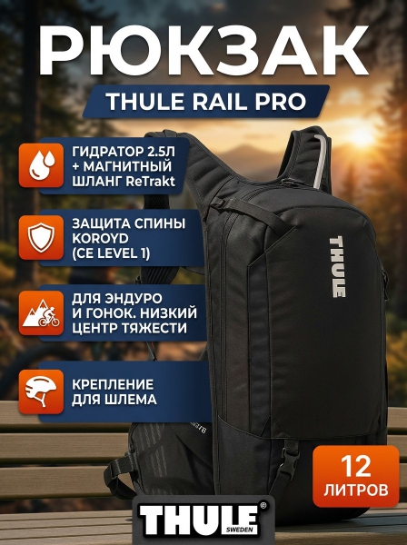 Велорюкзак с гидратором Thule Rail Bike Hydration Pro 12L - ОписаниеГидратационный рюкзак Thule Rail Pro емкостью 12 л с гидратационным резервуаром емкостью 2,5 л предназначен для однодневных велосипедных гонок на выносливость. Эта модель пригодится всем, кто стремится к новым рекордам.