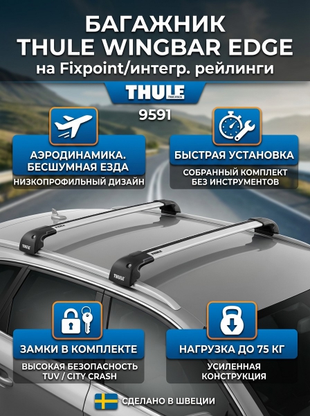 Багажник Thule WingBar Edge на Fixpoint / интегр. рейлинги, размер S, 9591 - БрендСтрана бренда: Швеция Страна производства: Швеция Премиальность бренда:Багажник Thule WingBar Edge на Fixpoint / интегр. рейлинги, размер S, 9591 - Характеристики
