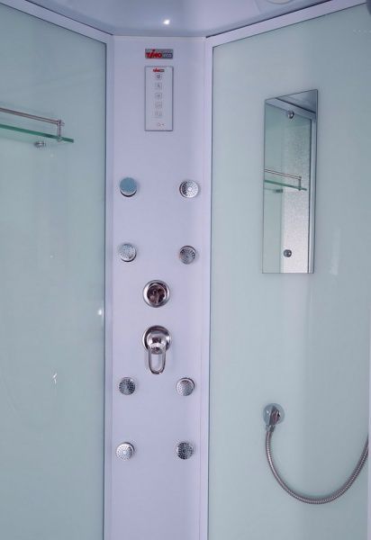 Душевая кабина TIMO Eco TE-0700 - ОписаниеСтильная, надежная и функциональная – душевая кабина TE-0700 станет отличной покупкой. Она имеет закрытую угловую конструкцию, внутри есть полочка и зеркало. Поддон – невысокий, изготовлен из листового акрила высочайшего качества. Дополнительно усилен стальным каркасом – чтобы выдерживать высокие нагрузки. Ручная лейка закреплена на специальном фиксаторе, вверху расположен верхний душ с режимом тропический душ. Принимать водные процедуры или наслаждаться гидромассажем можно под музыку – для этого предусмотрен радиоприемник. Сборка кабины не требует сил и производится без силикона.