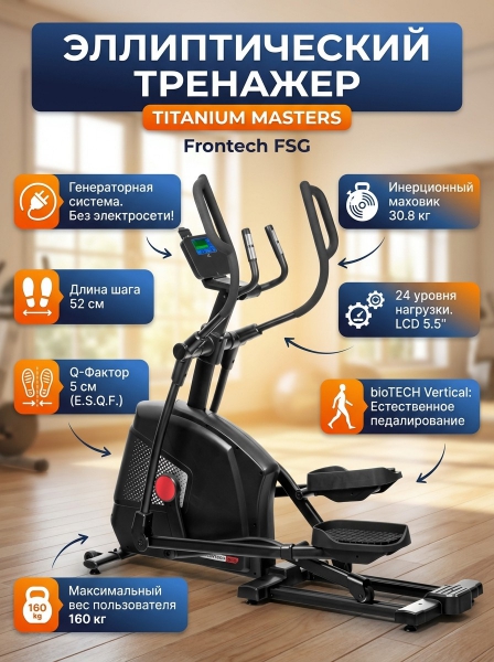 Генераторный эргометр Titanium Masters Frontech FSG - Обзор ТОП-10 лучших эллиптических тренажеров 2025 🏆: Обзор и рейтинг