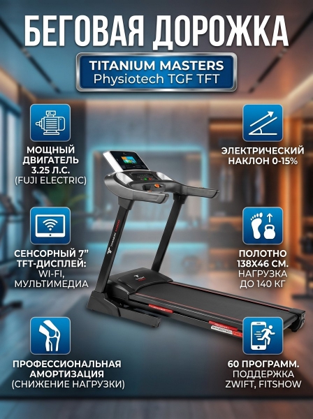 Беговая дорожка для дома Titanium Masters Physiotech TGF TFT - ДоставкаДоставка по Москве: бесплатно, 1-2 дняДоставка по Санкт-Петербургу: бесплатно, 2-3 дня Доставка по России: стоимость уточняйте у оператора. Беговая дорожка для дома Titanium Masters Physiotech TGF TFT - Отзывы0.0