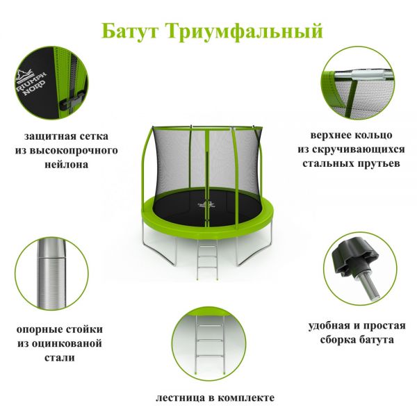 Батут Triumph Nord Триумфальный 244 см с лестницей - БрендСтрана бренда: КНР Премиальность бренда:Батут Triumph Nord Триумфальный 244 см с лестницей - Характеристики