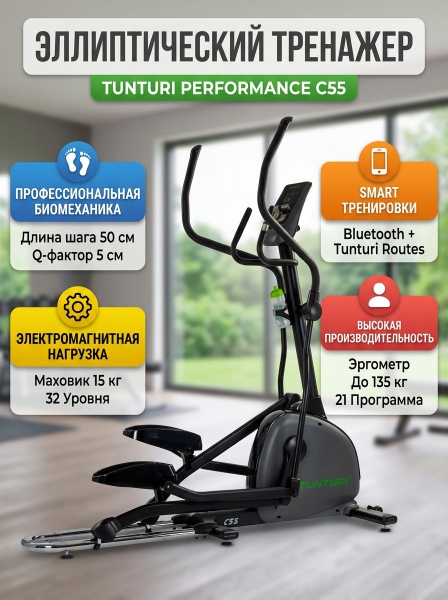 Эллиптический тренажер TUNTURI PERFORMANCE C55 - БрендПремиальность бренда:Эллиптический тренажер TUNTURI PERFORMANCE C55 - Характеристики