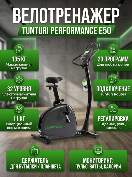 Велотренажер TUNTURI PERFORMANCE E50 - БрендПремиальность бренда:Велотренажер TUNTURI PERFORMANCE E50 - Характеристики