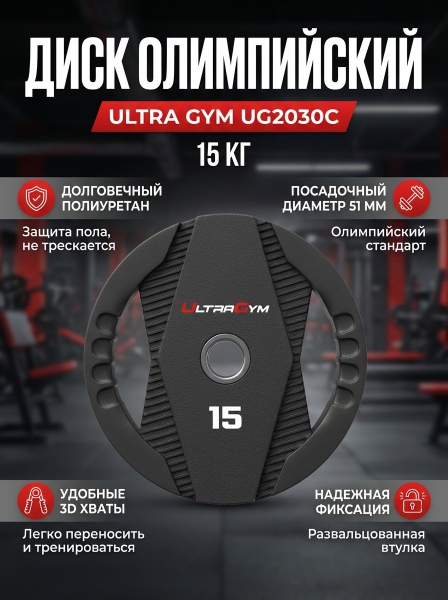 Диск олимпийский полиуретановый Ultra Gym UG2030С 15 кг - Преимущества