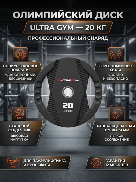 Диск олимпийский полиуретановый Ultra Gym UG2030С 20 кг - ДоставкаДоставка по Москве: бесплатно, 1-2 дняДоставка по Санкт-Петербургу: бесплатно, 2-3 дня Доставка по России: стоимость уточняйте у оператора. Диск олимпийский полиуретановый Ultra Gym UG2030С 20 кг - Отзывы0.0
