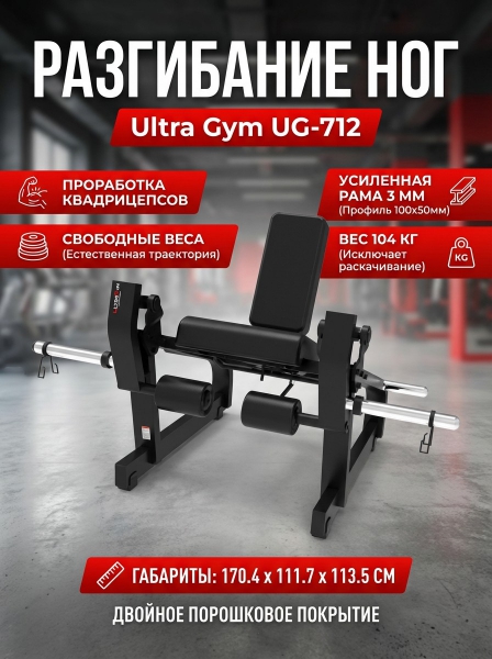 Разгибание ног Ultra Gym UG-712 - ОписаниеСомневаетесь? - Посмотрите рейтинг ТОП-10 по категории «Силовые тренажеры»Надежный тренажер UG-712 хорошо впишется в интерьер любого фитнесс-зала. Позволит эффективно проработать мышцы ног. Оборудование собрано на автоматической линии с лазерной резкой и сваркой.