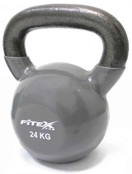 Гиря в виниловой оболочке 24 кг Fitex Pro FTX2201-24 - ОписаниеГиря Fitex Pro FTX2201 сделана из чугуна и имеет плотное виниловое покрытие, которое не окрашивает стены и пол, снизит шум и убережет кожу рук от раздражения. Гиря идеально подходит для использования в зонах функционального тренинга, аэробики и зоны свободных весов.