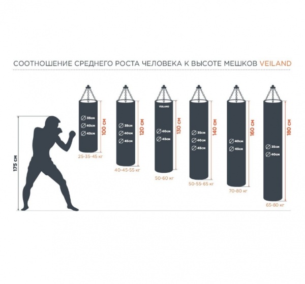 Боксерский мешок 180 см Veiland ELPU-8040/85-BLGR/02 - Преимущества