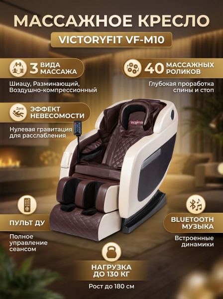 Массажное кресло VictoryFit VF-M10 - ДоставкаДоставка по Москве: бесплатно, 1-2 дняДоставка по Санкт-Петербургу: бесплатно, 2-3 дня Доставка по России: стоимость уточняйте у оператора. Массажное кресло VictoryFit VF-M10 - Отзывы5.0