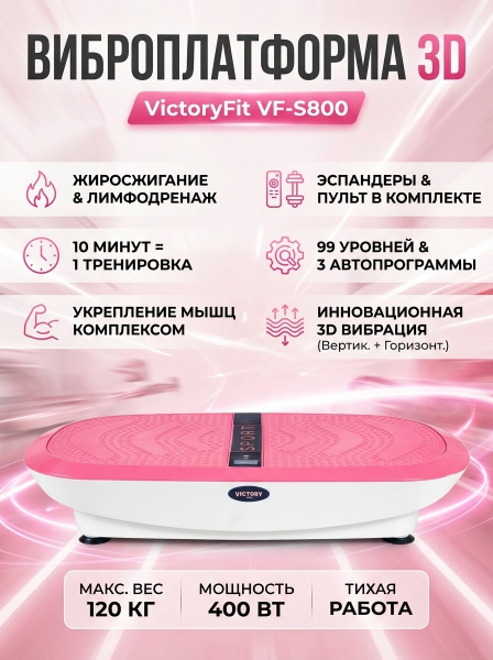 Виброплатформа 3D VictoryFit VF-S800 (розовая) - БрендСтрана бренда: КНР Премиальность бренда:Посмотреть все домашние виброплатформы для похудения VictoryFit (5) Виброплатформа 3D VictoryFit VF-S800 (розовая) - Характеристики