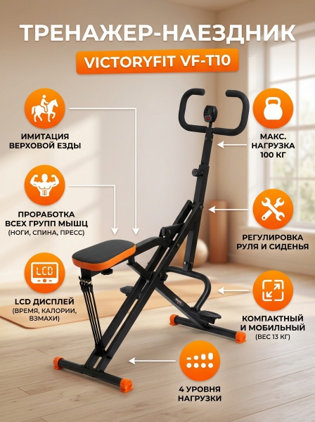 Тренажер-наездник VictoryFit VF-T10 - ДоставкаДоставка по Москве: бесплатно, 1-2 дняДоставка по Санкт-Петербургу: 395 ₽, 2-3 дня Доставка по России: стоимость уточняйте у оператора. Тренажер-наездник VictoryFit VF-T10 - Отзывы5.0