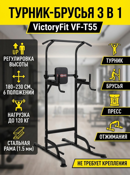 Напольный турник-брусья VictoryFit VF-T55 - БрендСтрана бренда: КНР Премиальность бренда:Посмотреть все тренажеры турник-брусья-пресс 3 в 1 VictoryFit (1) Напольный турник-брусья VictoryFit VF-T55 - Характеристики