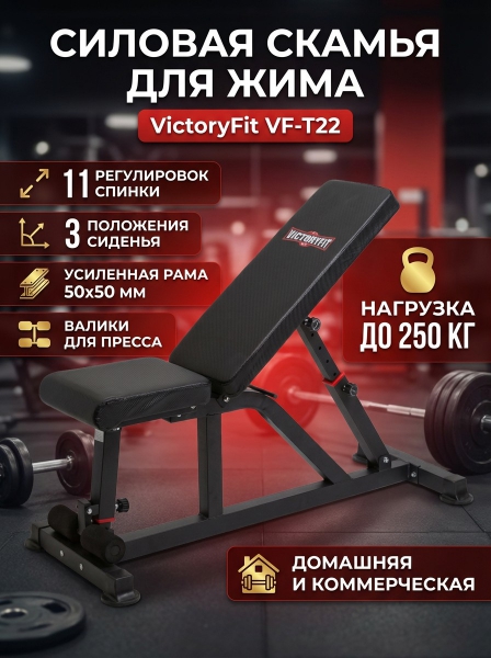 Скамья cиловая VictoryFit VF-T22 - Обзор ТОП-10 лучших универсальных скамей 2025 🏆: Обзор и рейтинг
