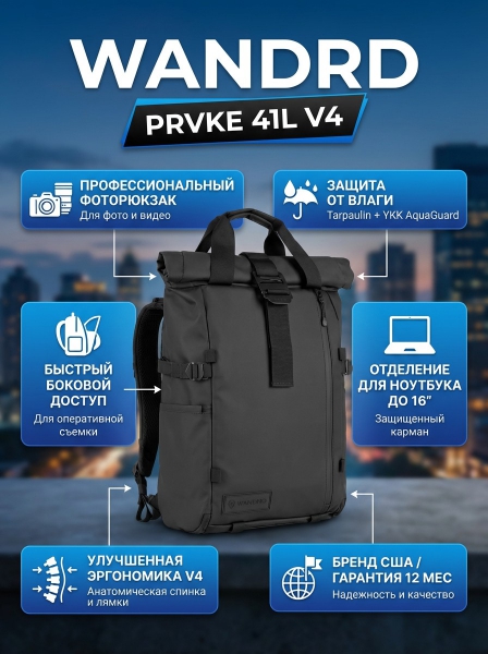 Рюкзак WANDRD PRVKE 41L (V4), черный - ОписаниеЛегендарная линейка рюкзаков PRVKE стала еще лучше. В версии WANDRD PRVKE V4 рюкзак получил обновленный минималистичный дизайн: современный монохромный стиль с ремнями и верхним клапаном, выполненными в цвет корпуса. Благодаря новой анатомической форме, переработанным лямкам и спинке с дышащими мягкими вставками, WANDRD PRVKE V4 обеспечивает непревзойденный комфорт и идеально подстраивается под особенности разных телосложений. Снаружи продумана каждая деталь: обновленные ручки, улучшенные бегунки на молниях, сдержанный брендинг, дополнительная молния для быстрого доступа через верх и увеличенное боковое отверстие для оперативного извлечения техники. Внутри рюкзак стал еще более функциональным: переработанная система карманов обеспечивает больше пространства и защиту для техники и аксессуаров. PRVKE V4 — это все, за что вы полюбили WANDRD, но теперь с еще большим вниманием к деталям, удобству и надежности.