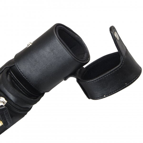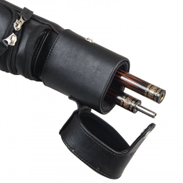Есть ручка сбоку и наплечный ремень с регулировкой длины. На ремне есть специальная вставка для комфортной носки на плече. Каждая часть кия хранится в отдельном отсеке. С внешней стороны имеются карманы для аксессуаров и удлинителя Большой карман внутри снабжен дополнительной молнией для надежной фиксации.