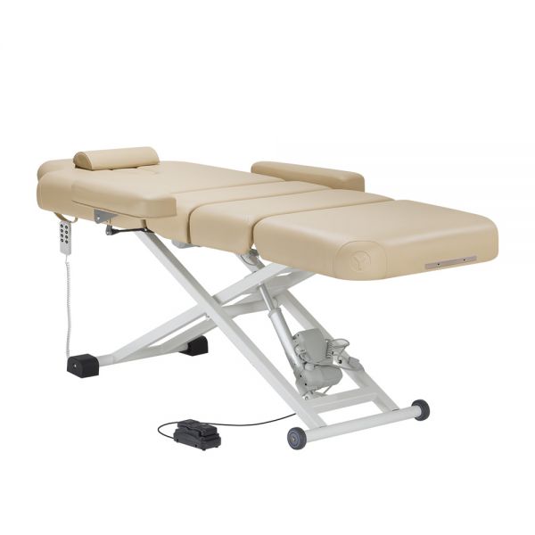 Конструкция стола состоит из четырех секций, каждая из которых регулируется отдельно. Все секции стола регулируются под анатомические особенности пациентов с учетом удобства во время проведения определенного вида массажа. Секции для ног и спины регулируются при помощи пульта управления. Высота стола устанавливается с помощью кнопки пульта или специальной ножной педали.